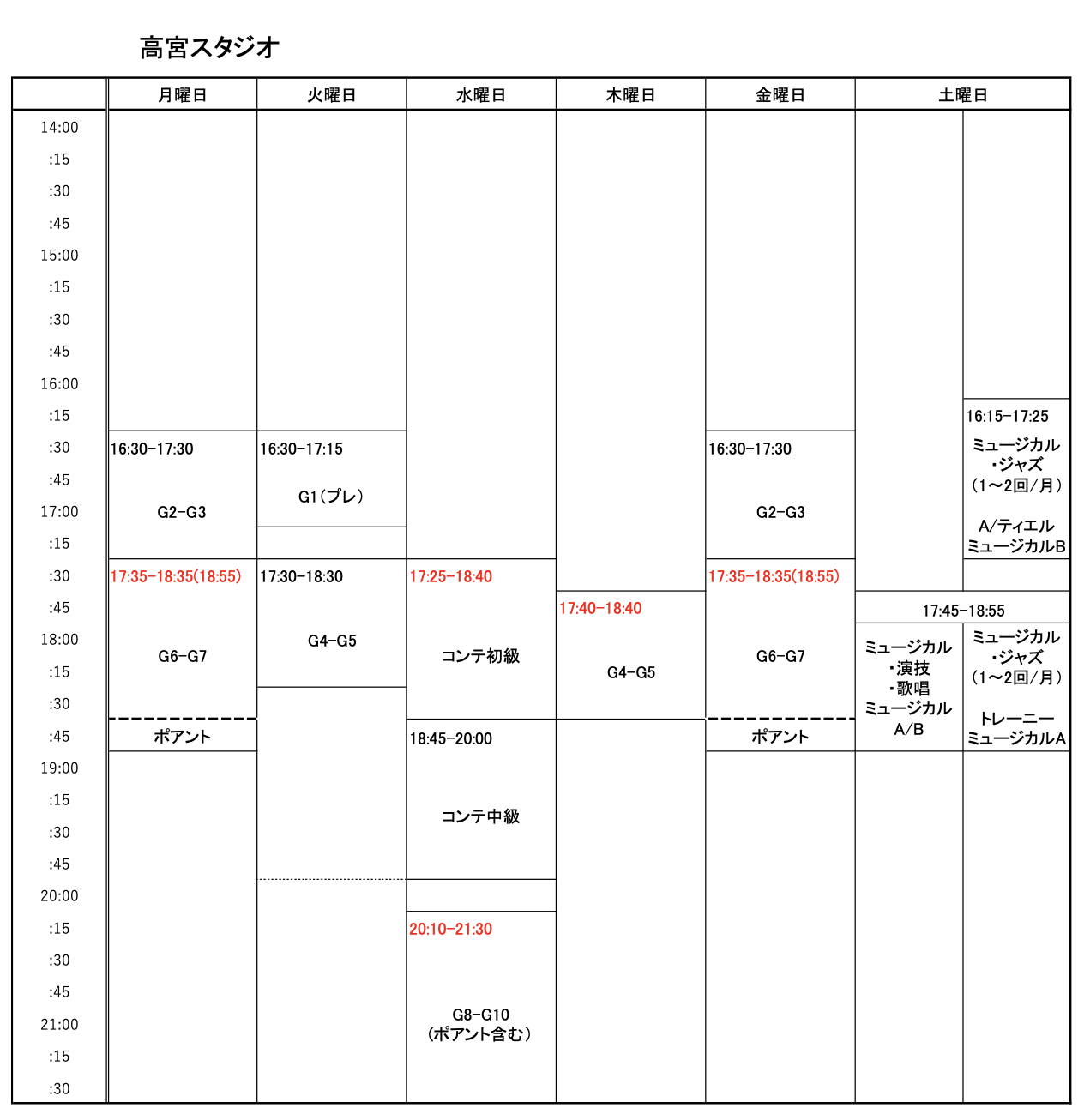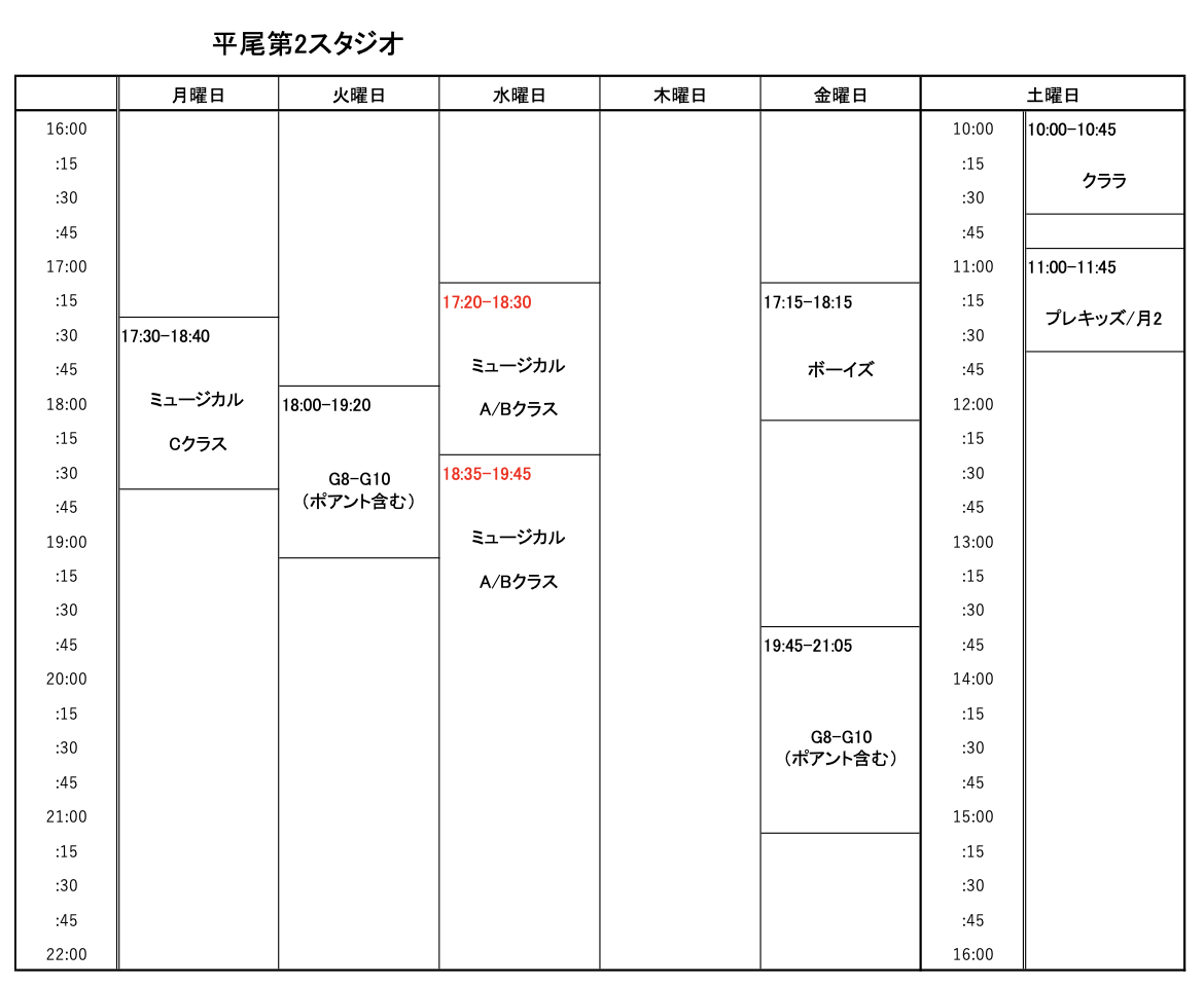 | G8-10 | 中学~高校生対象クラス(※要経験者) |
