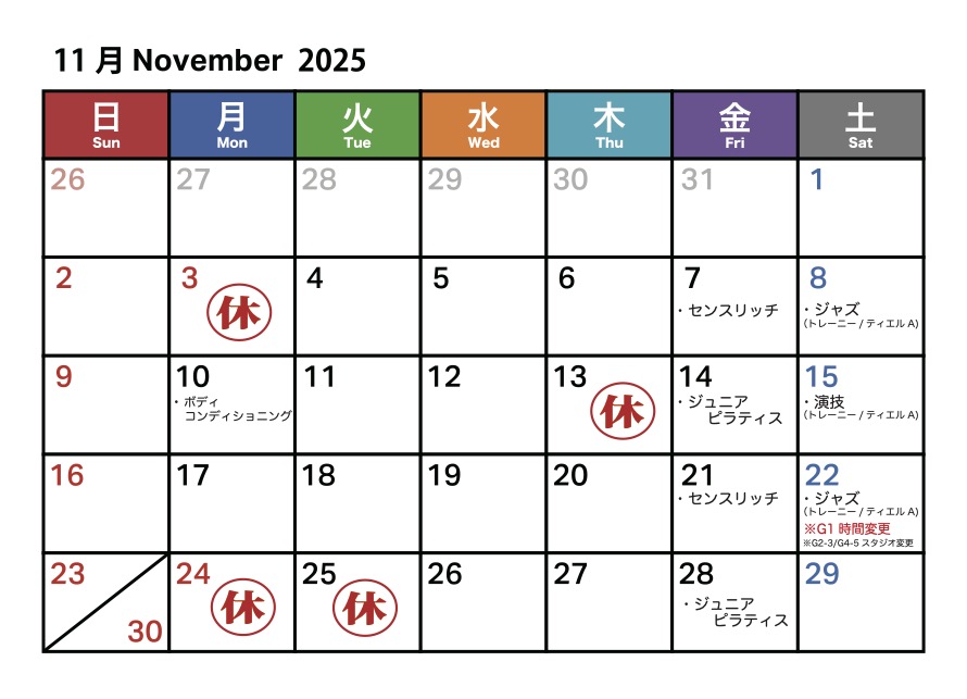 ◆平尾G2-3,G4-5(土曜クラス)/スタジオ変更◆